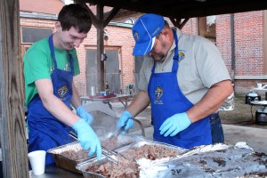 I’m proud to say that my cousin is in his final year at Saint Joseph Abbey and Seminary School in Saint Benedict, La. (which is right outside of Covington, La.). Stephen is the student body president and organized Saint Joseph’s 86th annual bonfire this year. He invited my hometown Knights of Columbus to cook for the event. The KC’s (of which Stephen and, really, all the men in my family are in) said yes and ended up cooking 16 Boston butts to feed the seminarians and their families as well as the attending monks and priests. The bonfire took place after the annual football game between the St. Joseph Seminary Ravens and the Notre Dame Seminary Hunchbacks. Unfortunately, the Hunchbacks won the tough, but fun flag football game.
