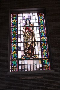There are also 12 stained glass windows depicting saints whose lives are associated with the church’s priesthood or missionary work. The most meaningful one to me was the one portraying St. Theresa, the Little Flower.