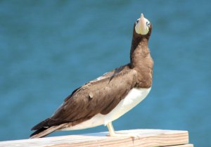 The All About Birds website describes the Brown Booby as a tropical waters seabird that ranges as far north as the Gulf of California, although it is rarely seen on both coasts of the United States.