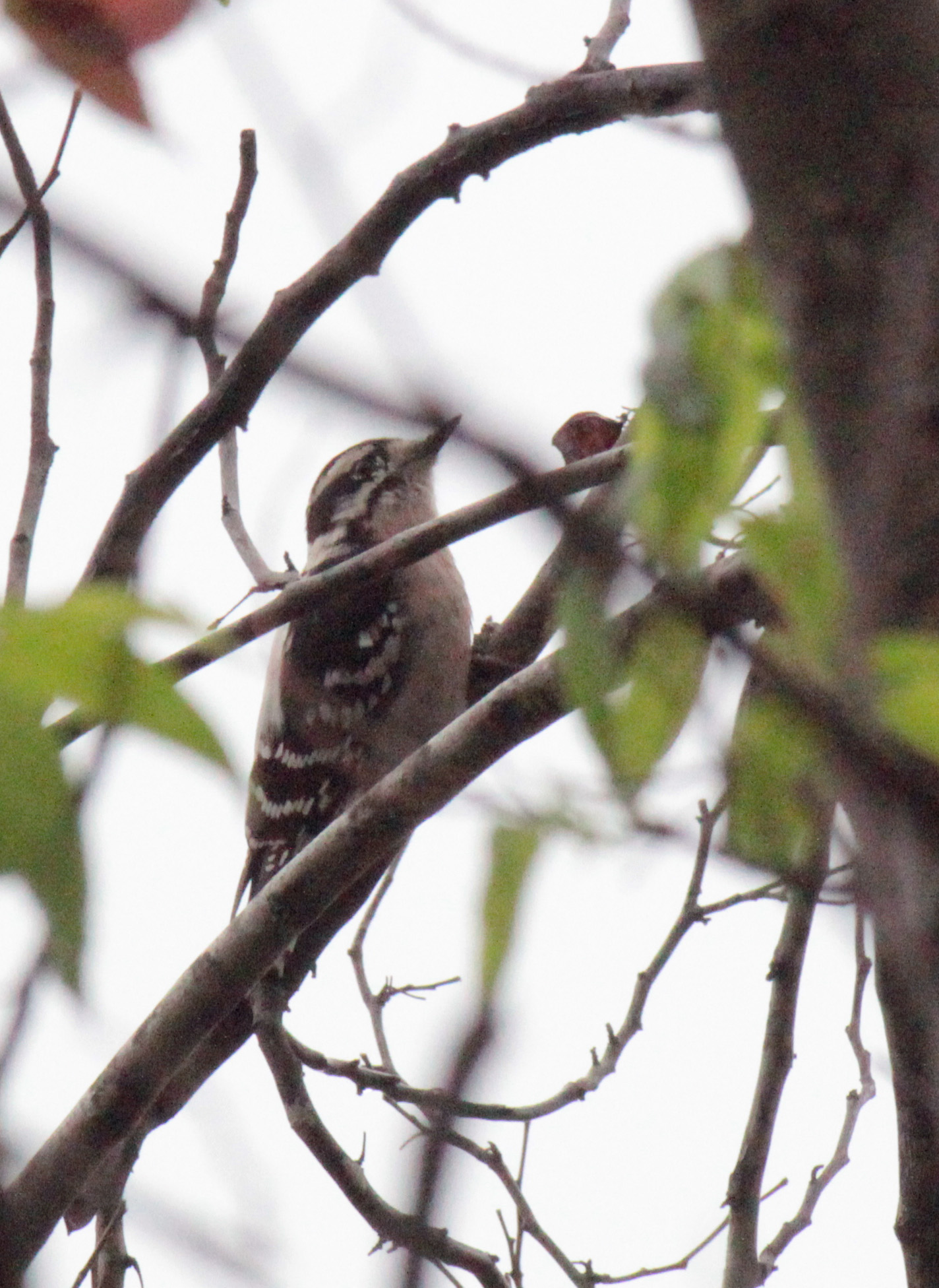 I finally saw my first Downy Woodpecker at my aunt’s house in Little Rock. OK, I might have seen it before but its hard to distinguish from the Hairy Woodpecker. Both are the only common woodpeckers to have vertical white strips on the back. They also have black and white wings with a comma-shaped black mark, although the mark is more obvious on the Hairy.
