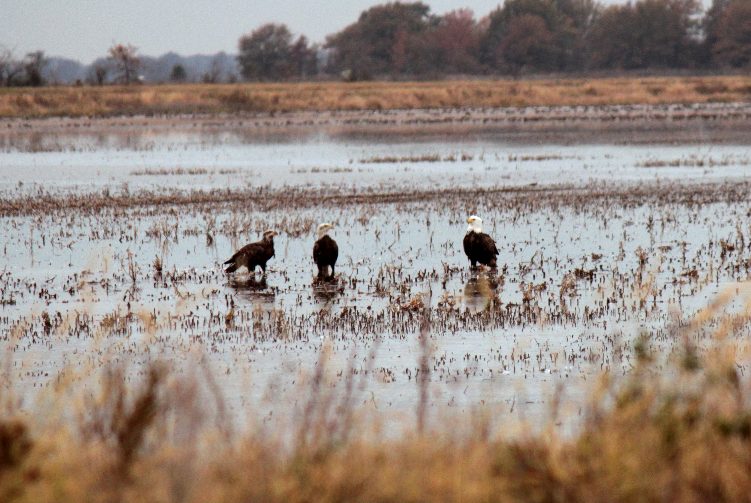Right now is the perfect time to capture waterfowl in the flooded fields between Wynne and Stuttgart. I was headed back home one morning last week when I passed four birds (one flew away) sitting in a field. I grabbed my camera, grumbling that I needed new contacts and snapped a few pictures. Boy, was I surprised to zoom in on the pictures and learn that the birds were Bald Eagles, juveniles and adults. It basically made my week — yes, I’m easy to please! 🙂