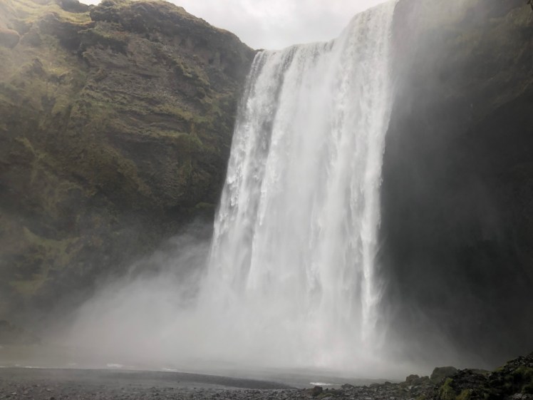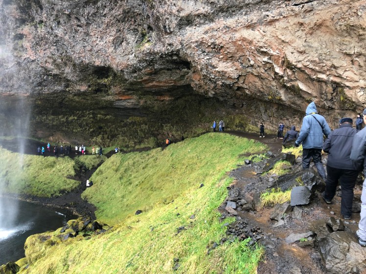 Leaving at our usual time of 8 a.m., our first stop of the day was the 200-foot Seljalandsfoss waterfall. We were actually able to walk around and behind the waterfall – which was pretty neat and satisfying. I might have gotten pretty wet during the walk behind it but it was worth it.