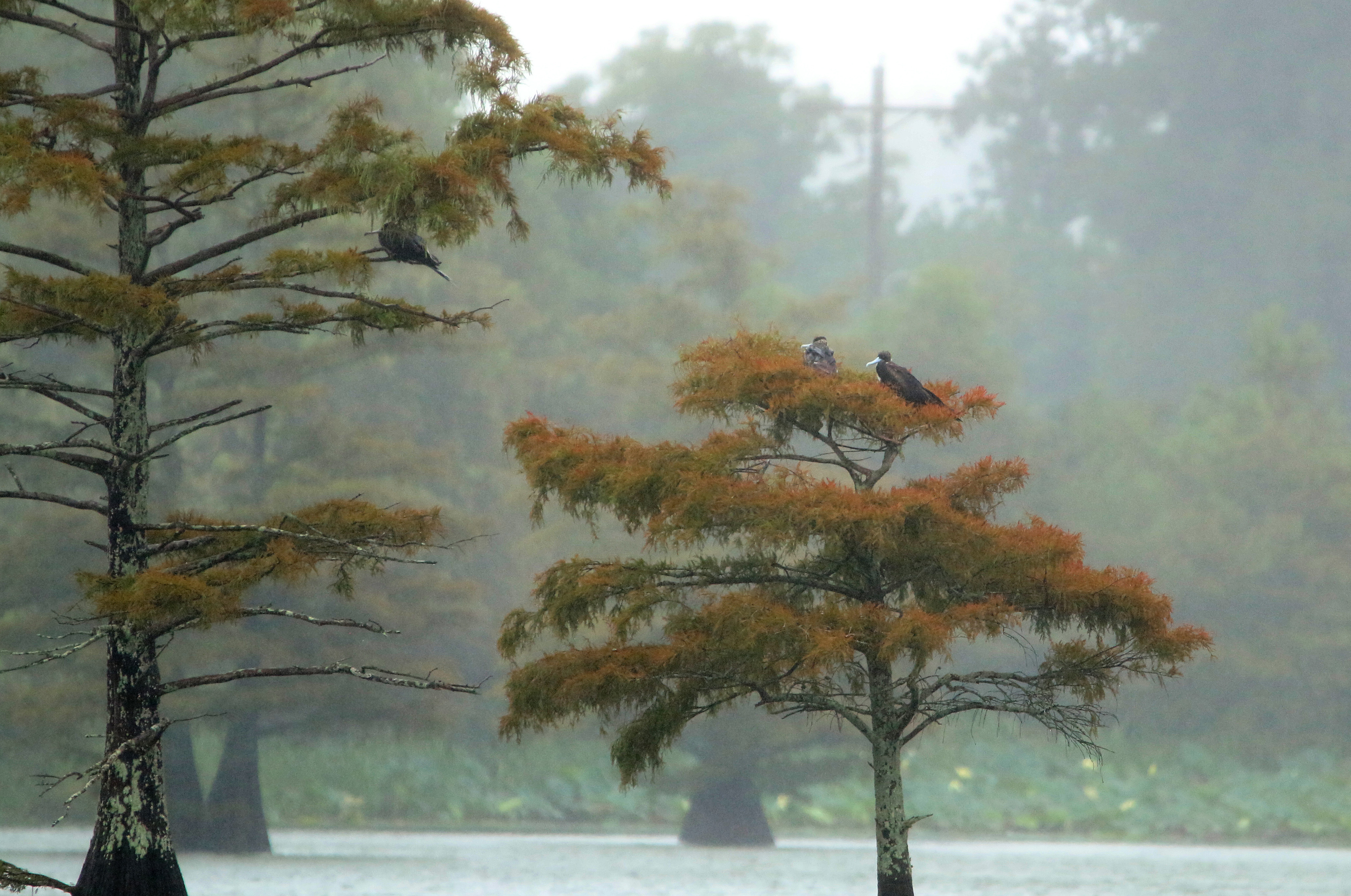 Seven Magnificent Frigatebirds have been found in Arkansas as Hurricane Ida continues to head through. Magnificent Frigatebirds are large seabirds that skim fish from the surface of the water or chase other birds to steal food. They are typically founding around the Gulf of Mexico and Caribbean Sea. I wasn’t taking any chances of missing them so I took off to find them at Lake Grand in Chicot County. I got lucky.