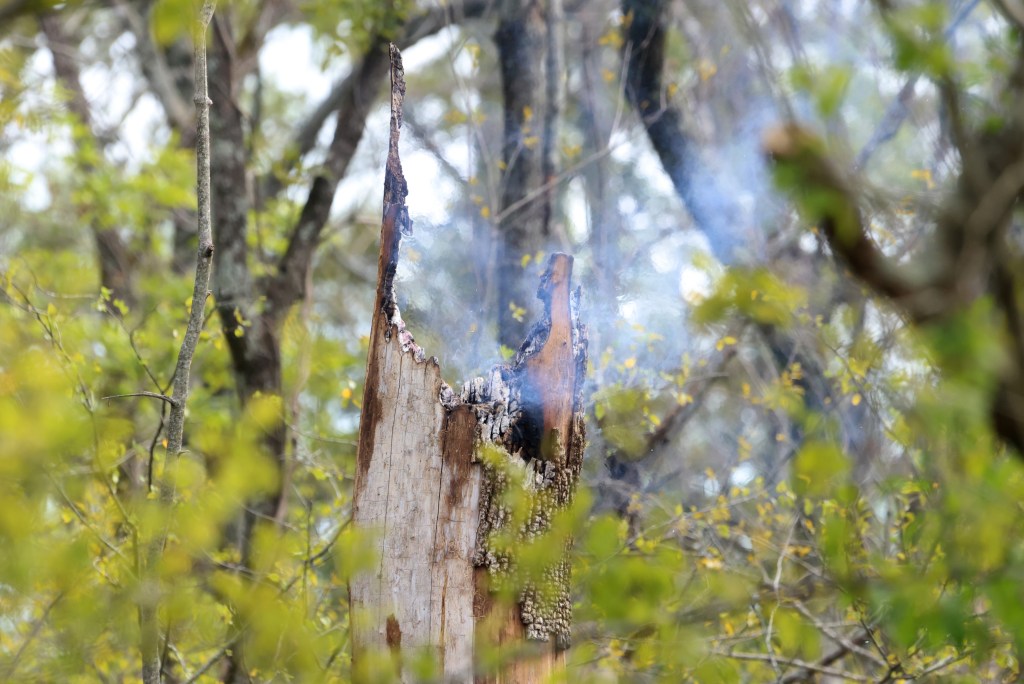 I came across this burning tree during a recent visit to Wapanocca National Wildlife Refuge. The tree, found in a swampy area alongside the road, was likely struck by lightening.