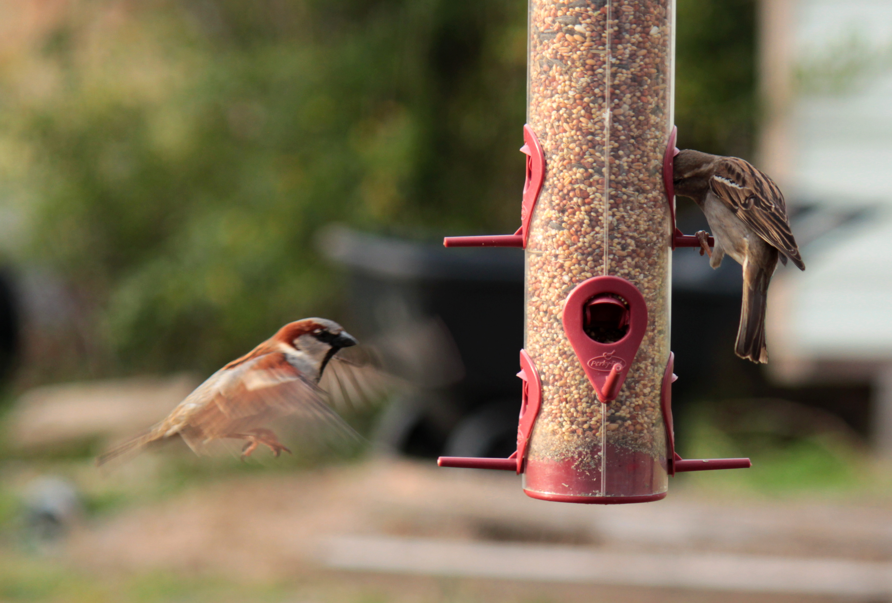 After I finished, I just happened to glance over in time to see a bird leaving my hummingbird feeder. I. Was. Excited! Could it be a hummingbird, already? Nope. I sat by my window for an hour watching house sparrows, northern cardinals and American robins come up to feed. I’m now positive that it was a sparrow that went to the wrong feeder.