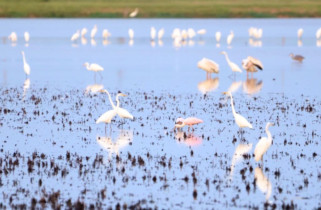 This is something I didn’t realize until recently. I was looking for shorebirds at Bald Knob National Wildlife Refuge, when I discovered three Ruby-throated Hummingbirds hovering around one particular spot on a nearby tree. It was pretty interesting to watch: