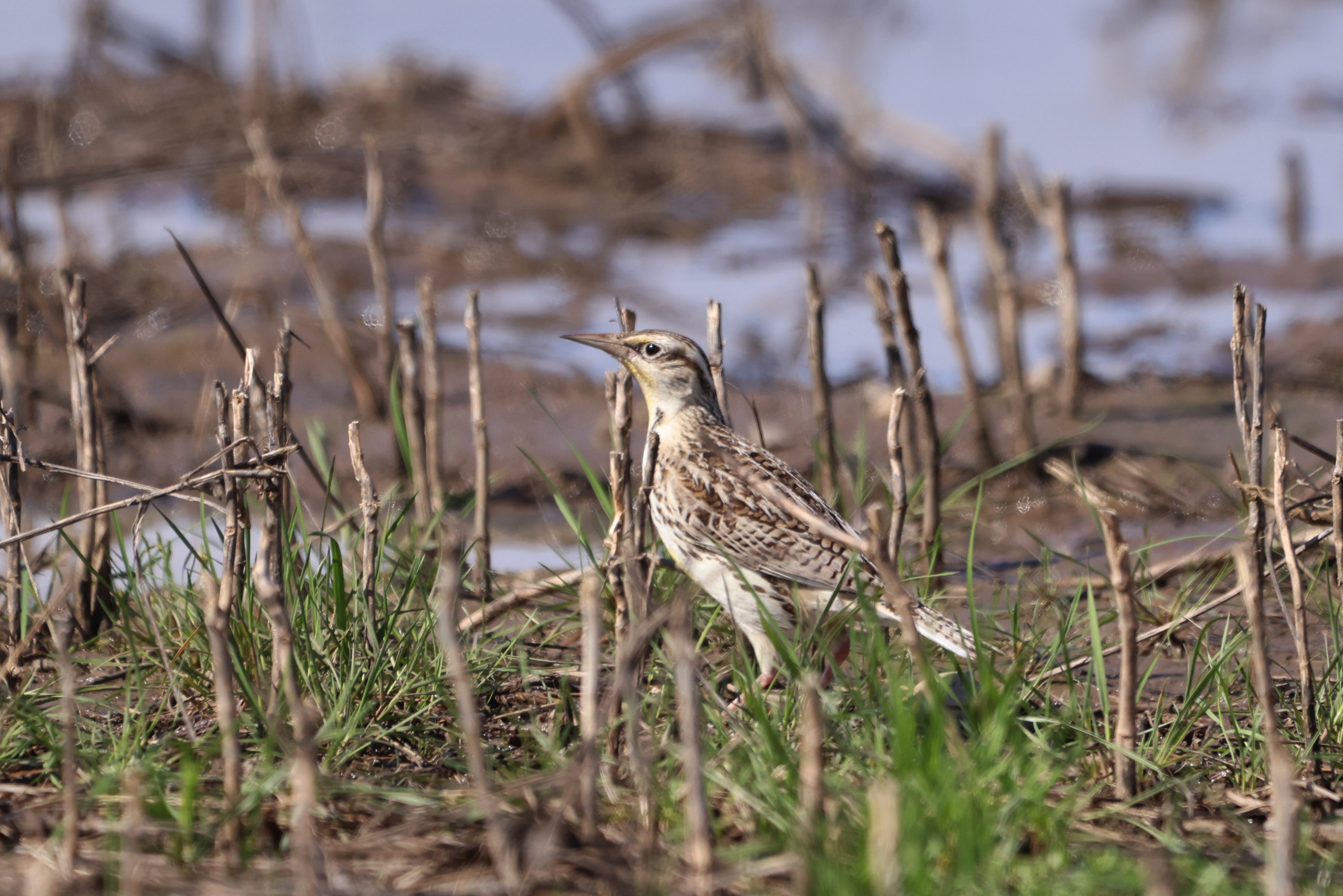 This winter, I began visiting the Atkins Bottoms area in Pope County. My goal was to find Tundra Swans. While I haven’t found a Tundra, I did come across a Western Meadowlark during a recent trip. I’m more used to the Eastern Meadowlark, which have darker head stripes. It helped that the Western Meadowlarks were very vocal, making identification easier. Recent trips have been filled with birds, including Horned Larks, Lapland Longspurs and even a Merlin. I especially excited to see Lapland Longspurs – a first for me.