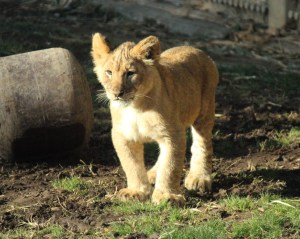 One of the three lion cubs.This child got so excited when the lion would pace right in front of us. I was excited too, but that lion wanted us for lunch — thank goodness for the glass separating us only by inches.They were hungry guys!