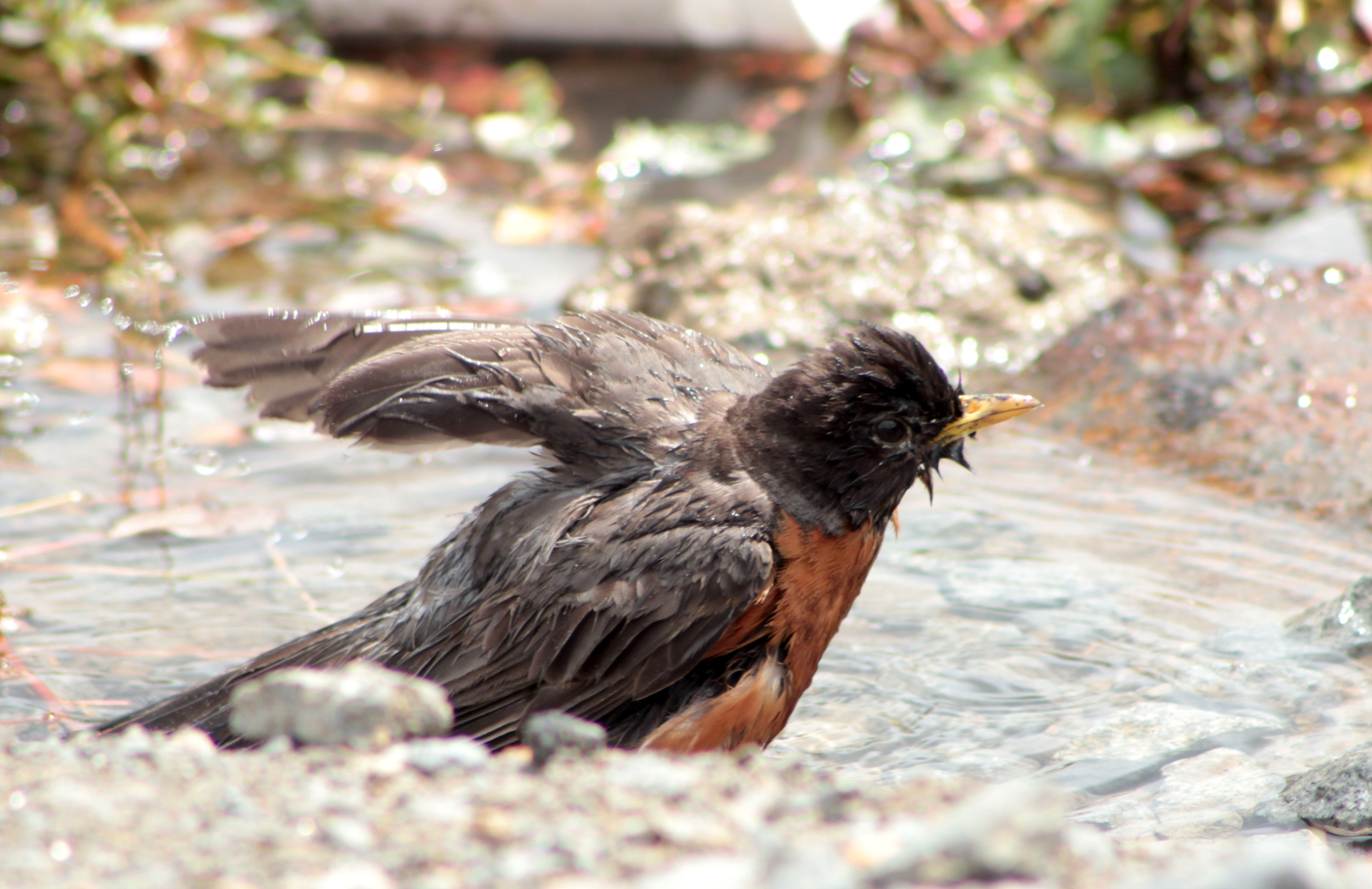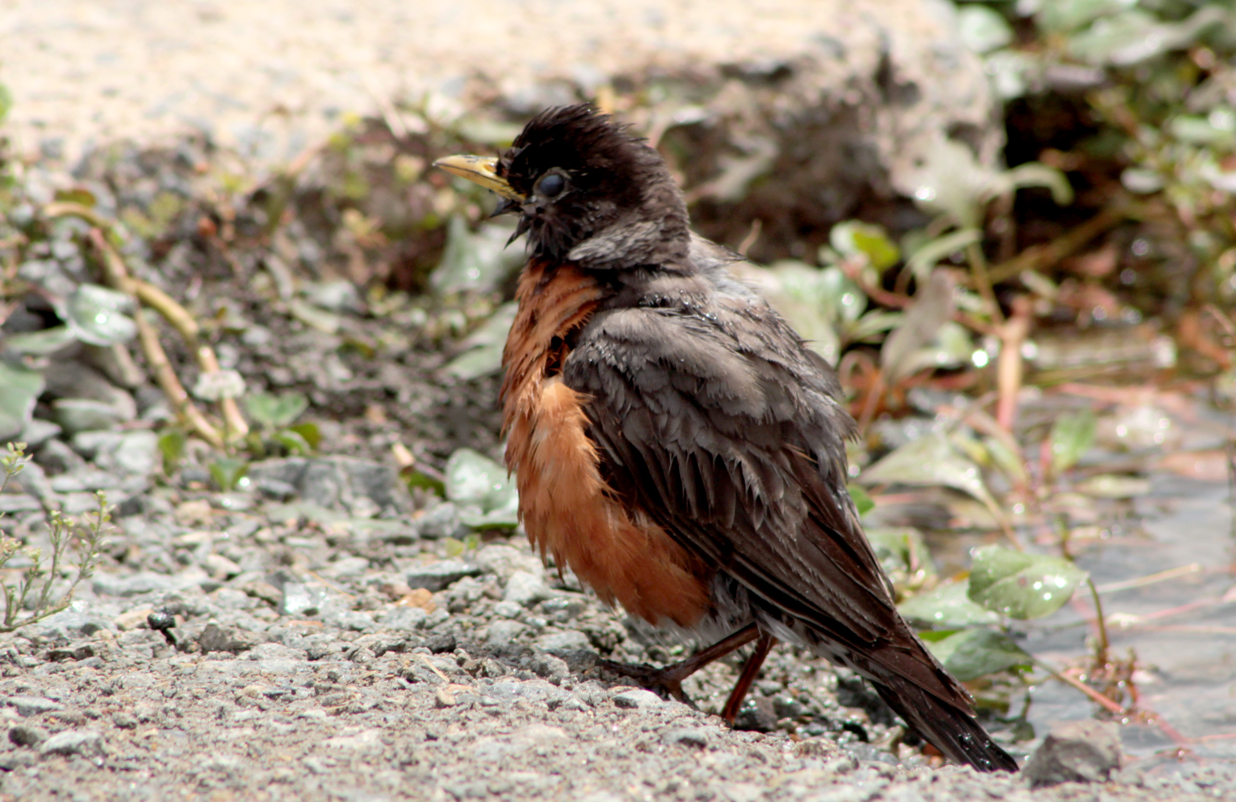 American RobinOur first winter storm blew into Arkansas early Thursday afternoon keeping me at home this past weekend. I’m not complaining — I enjoyed it. Outside ice-covered everything and we had few visitors except for cardinals, a finch, an American Robin and dozens of White-Throated Sparrows.